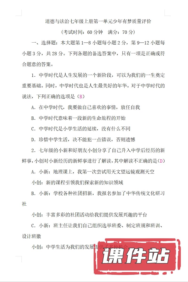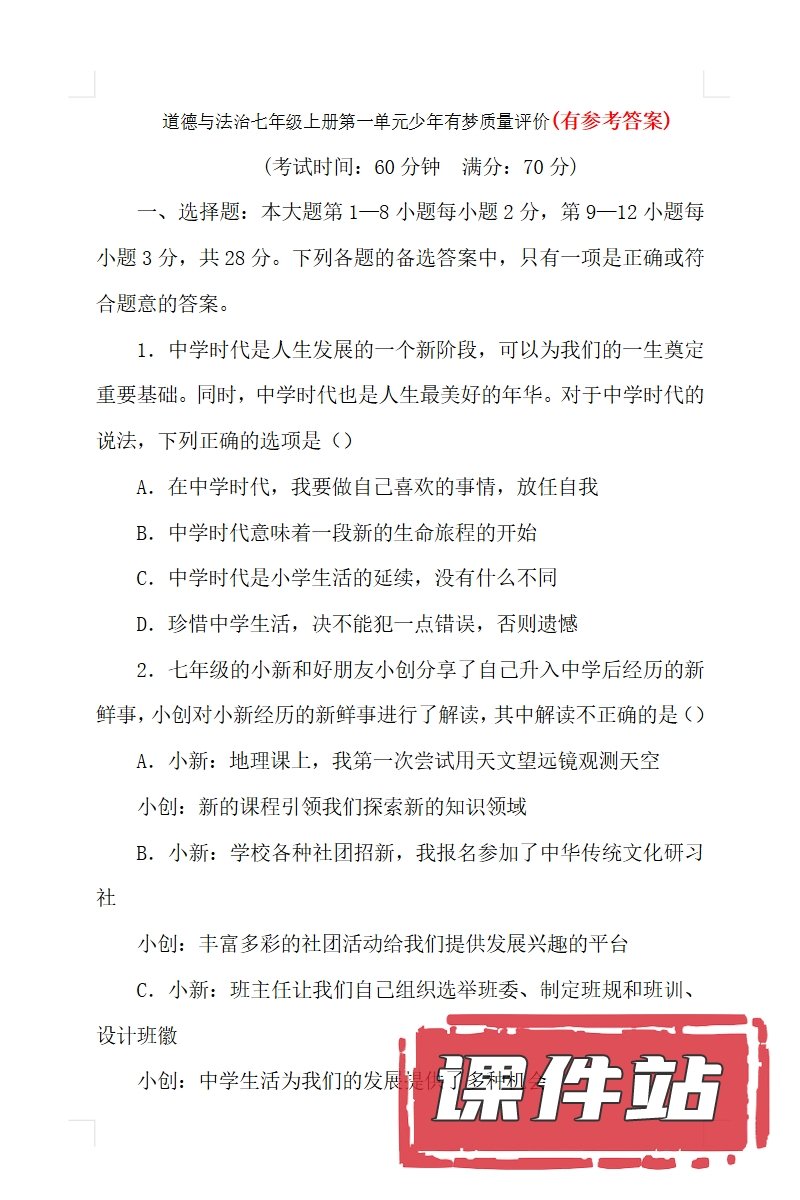 【打包下载】部编版七年级道德与法治上册教学资源