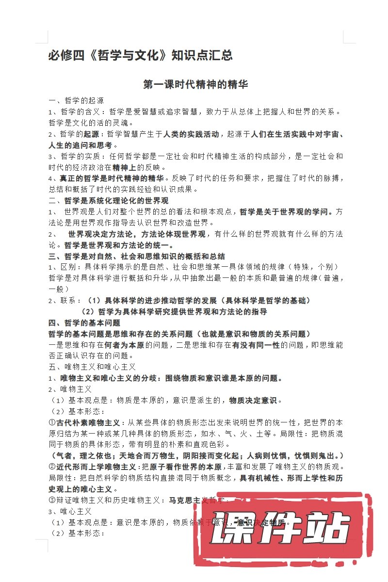 【打包下载】部编版高中思想政治必修4教学资源