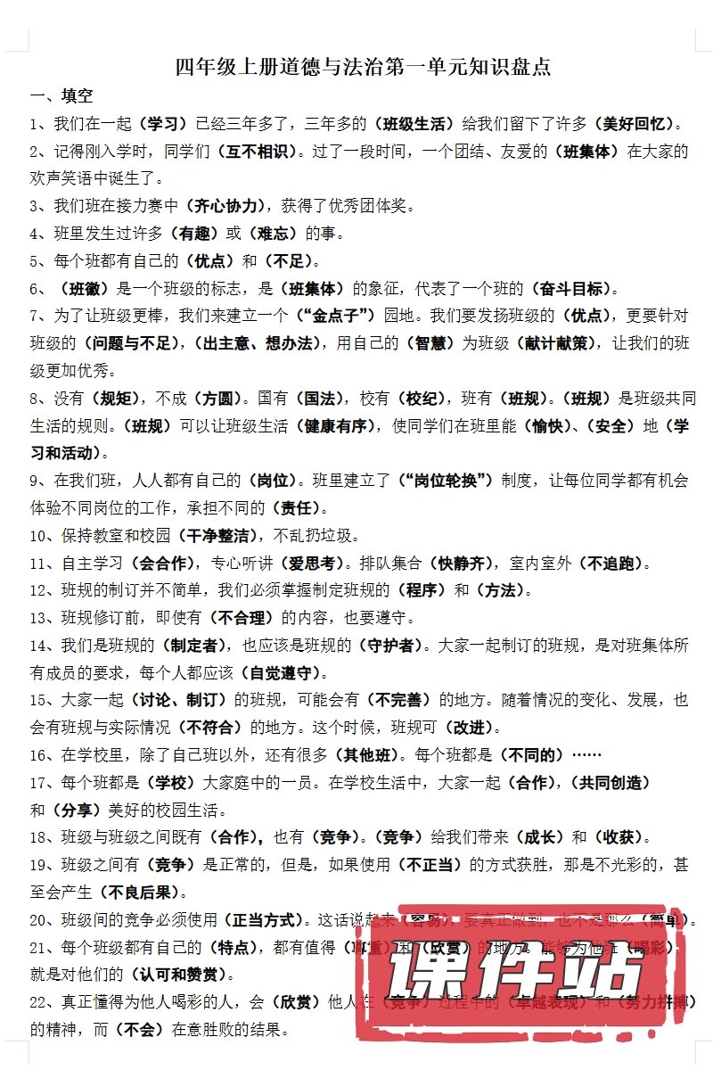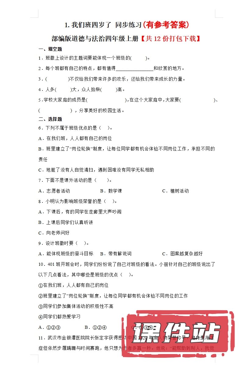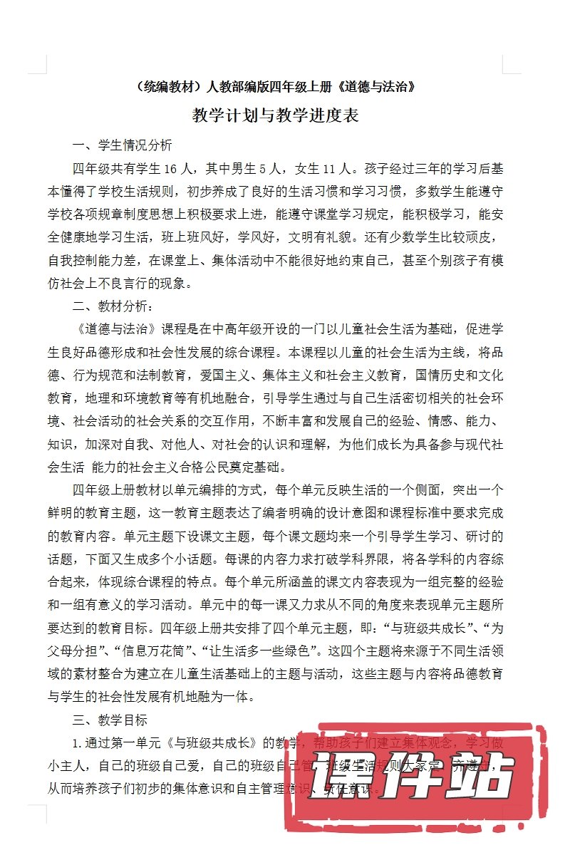 【打包下载】部编版四年级道德与法治上册教学资源