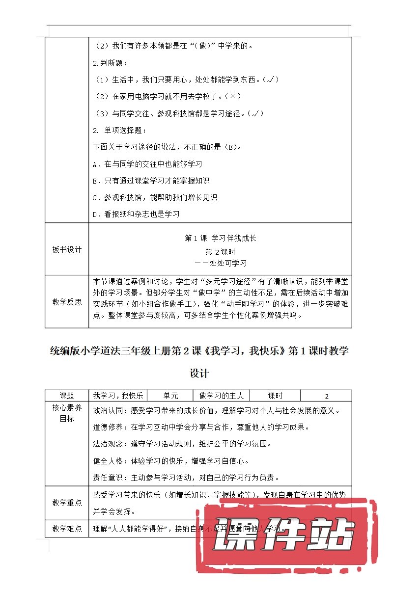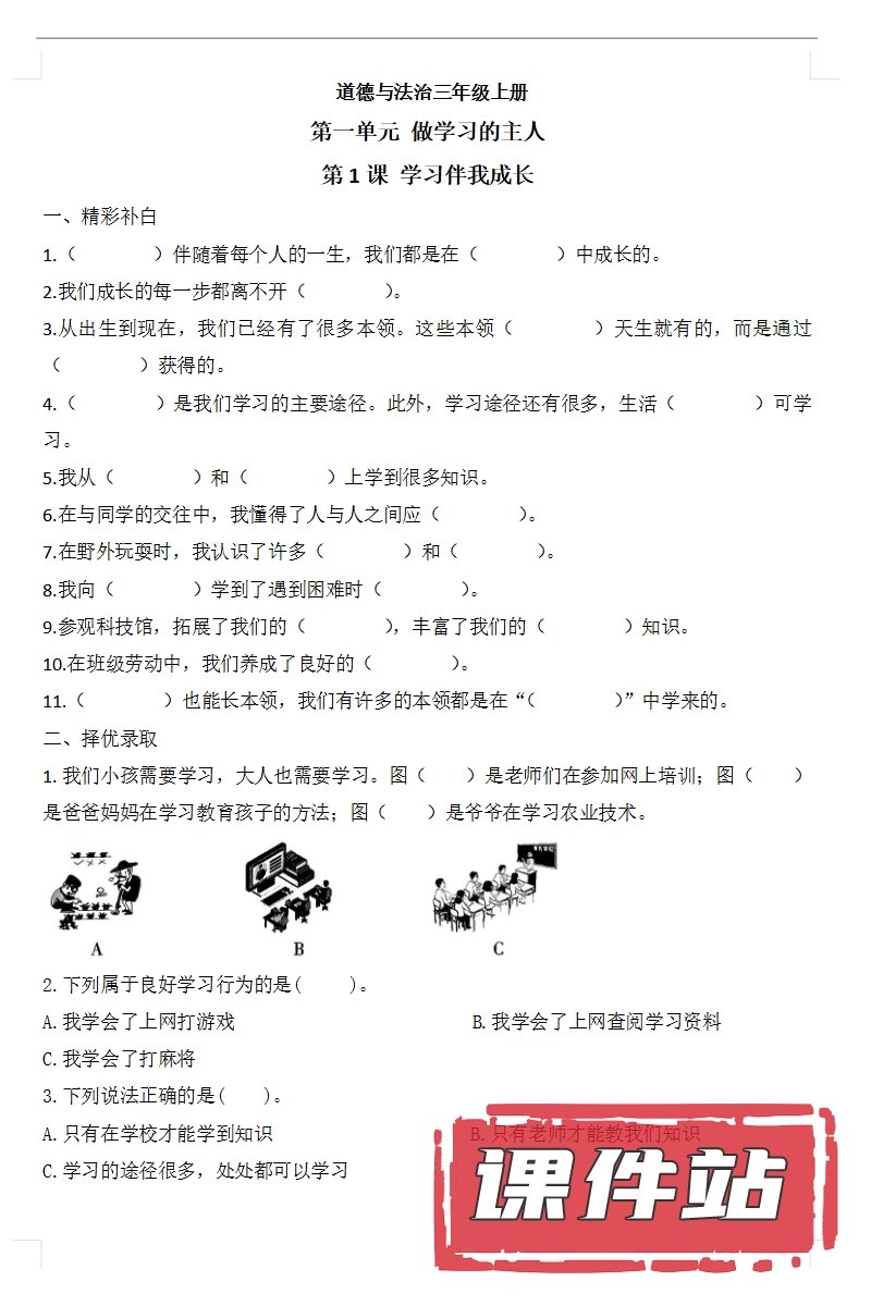 【打包下载】部编版三年级道德与法治上册教学资源
