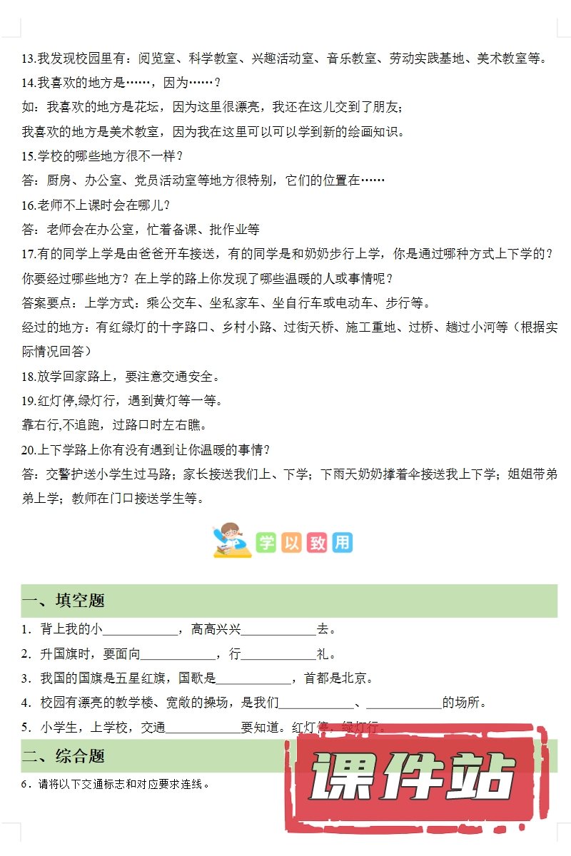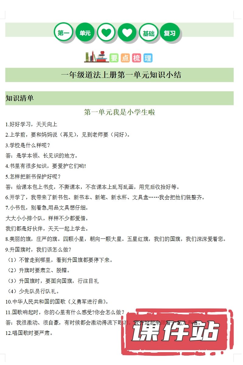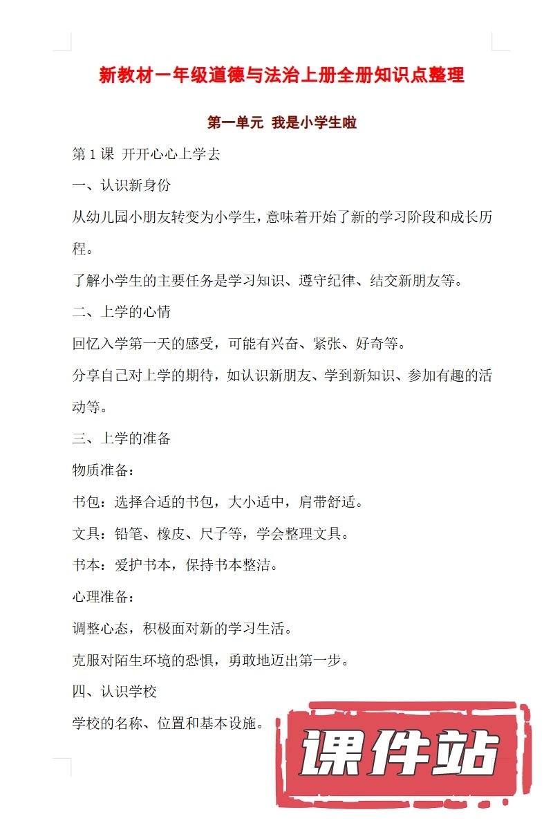 【打包下载】部编版一年级道德与法治上册教学资源