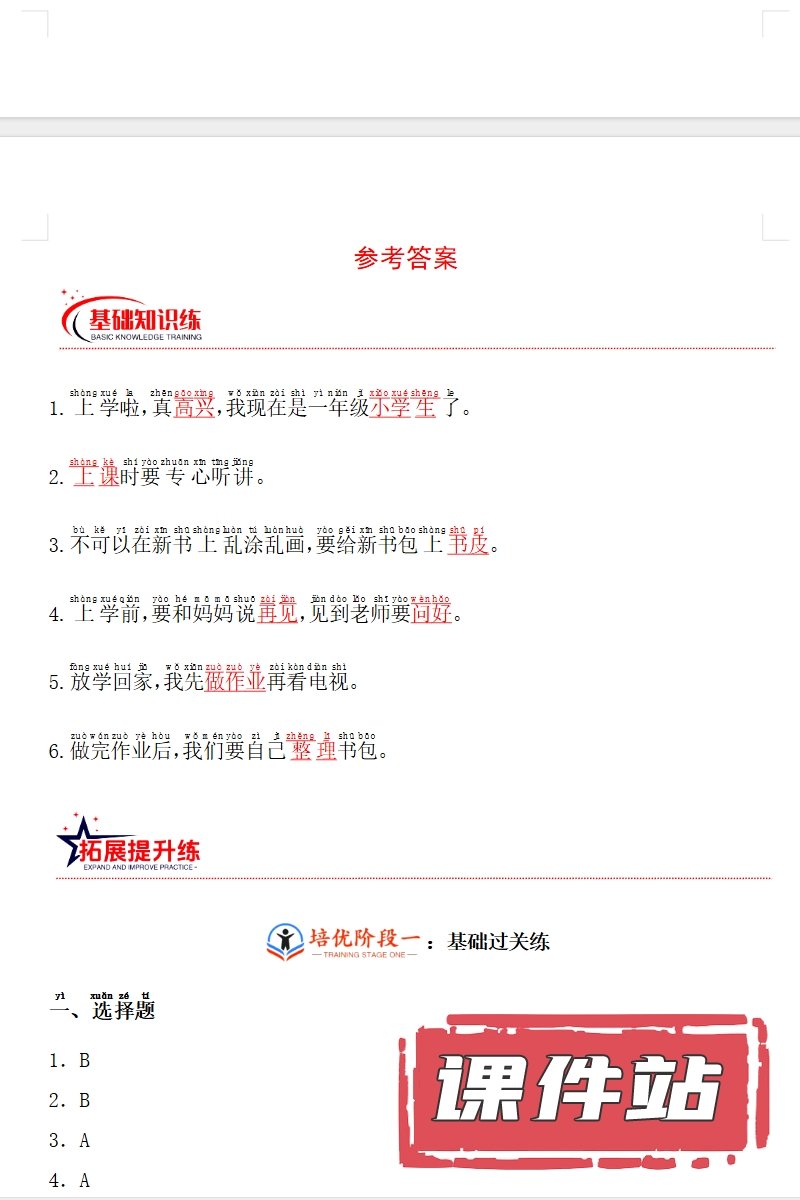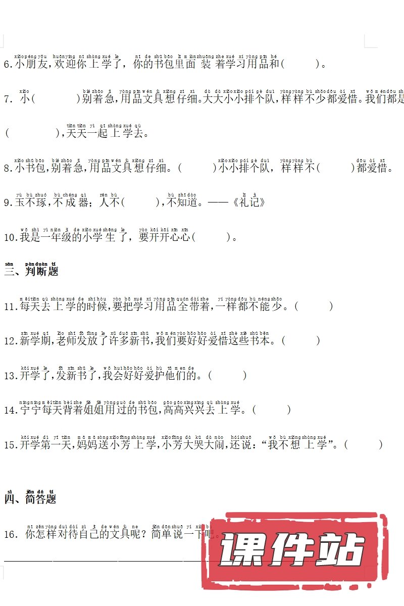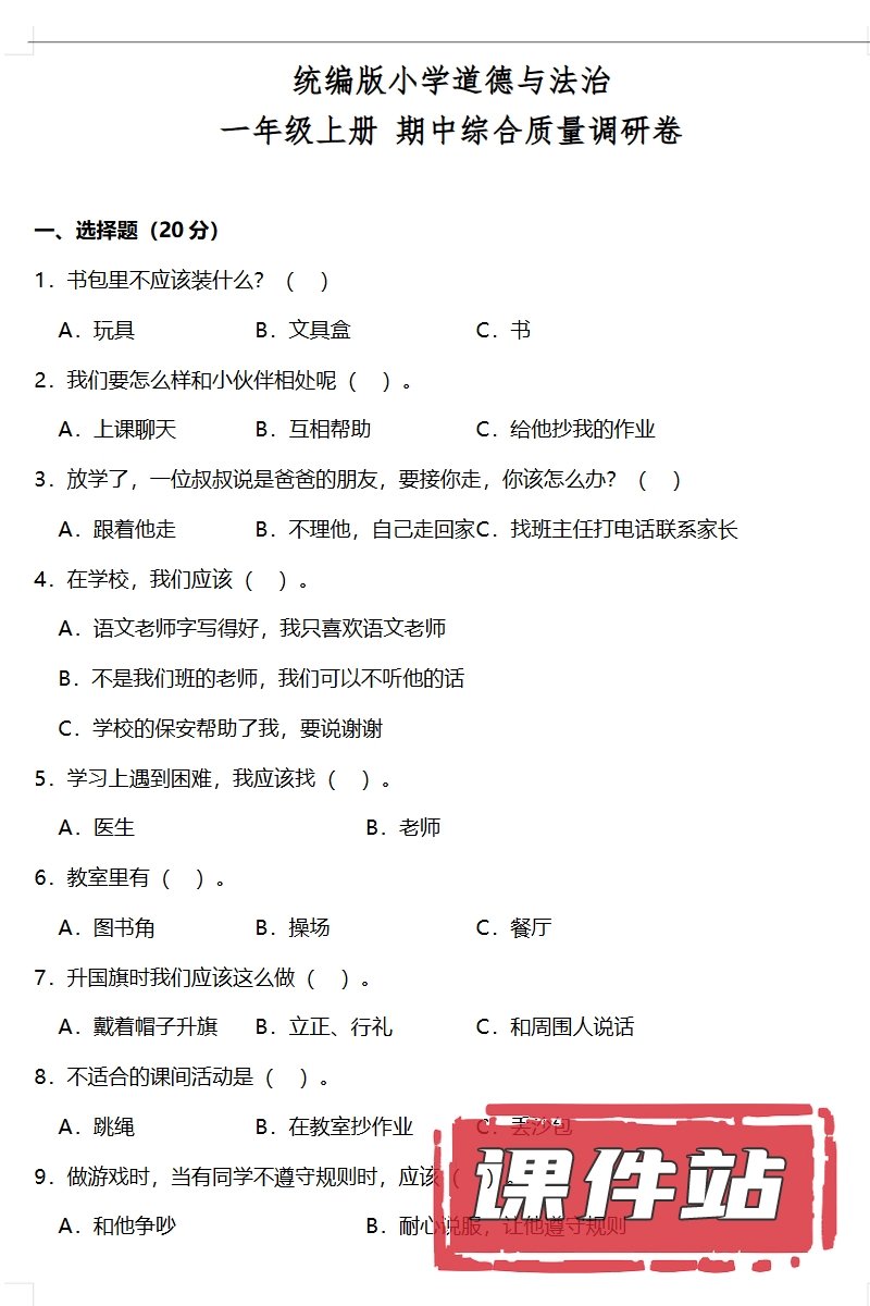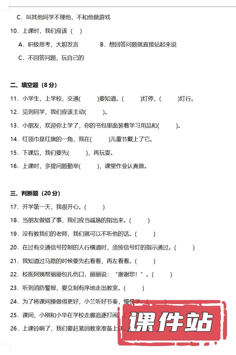 【打包下载】部编版一年级道德与法治上册教学资源