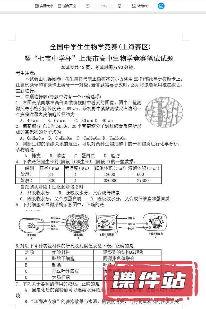 【打包下载】高中生物竞赛教学资源