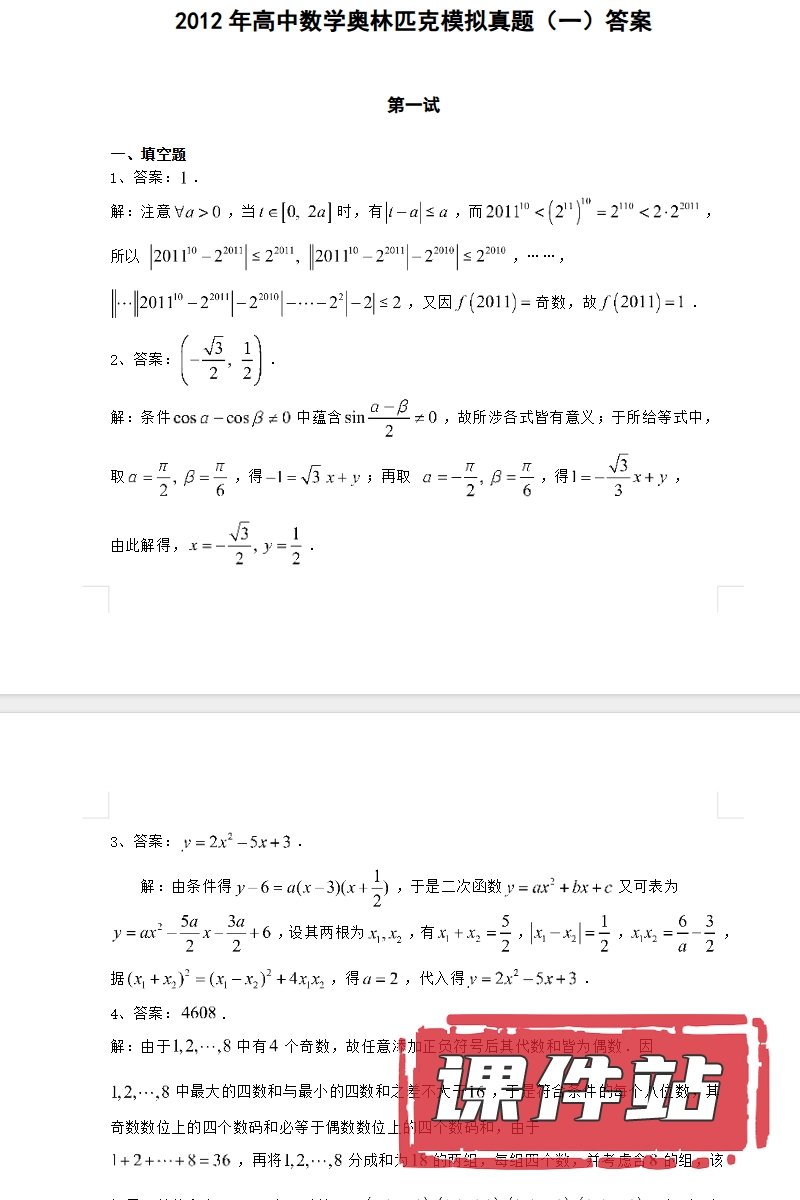 【打包下载】高中数学竞赛教学资源