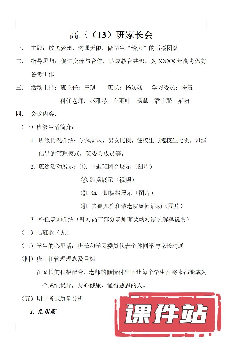 【12】高三家长会PPT、教案、发言稿、家长代表发言稿、总结反思(119份)