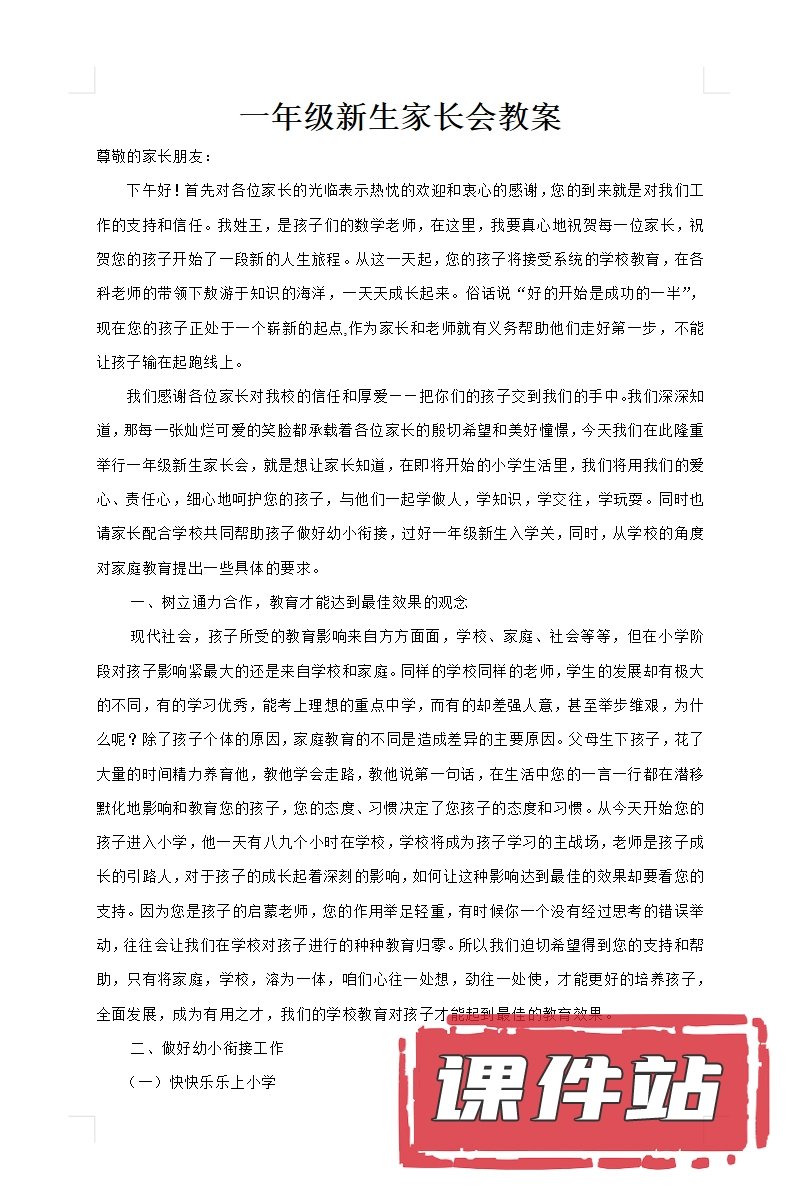 【1】一年级家长会PPT、教案、发言稿、家长代表发言稿、总结反思(118份)