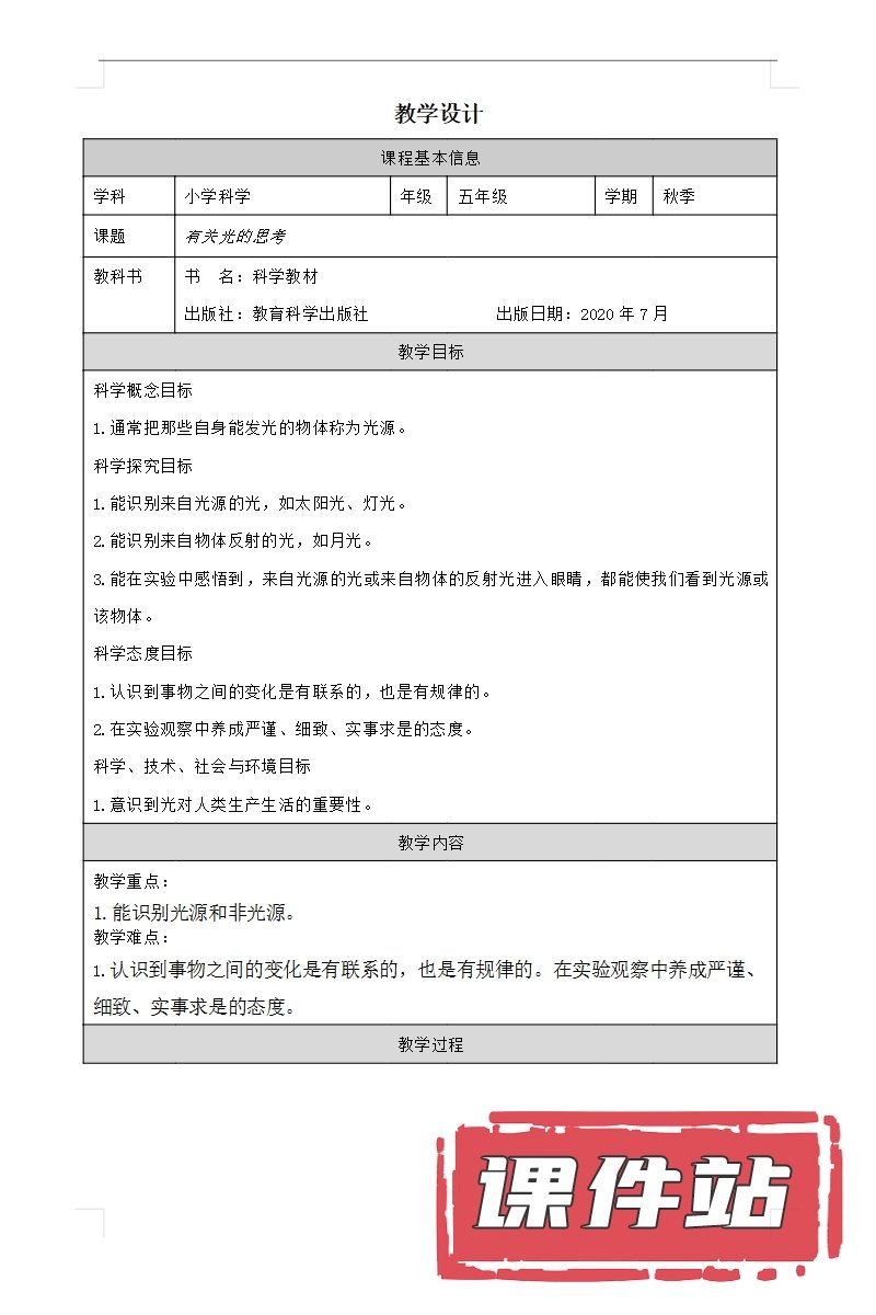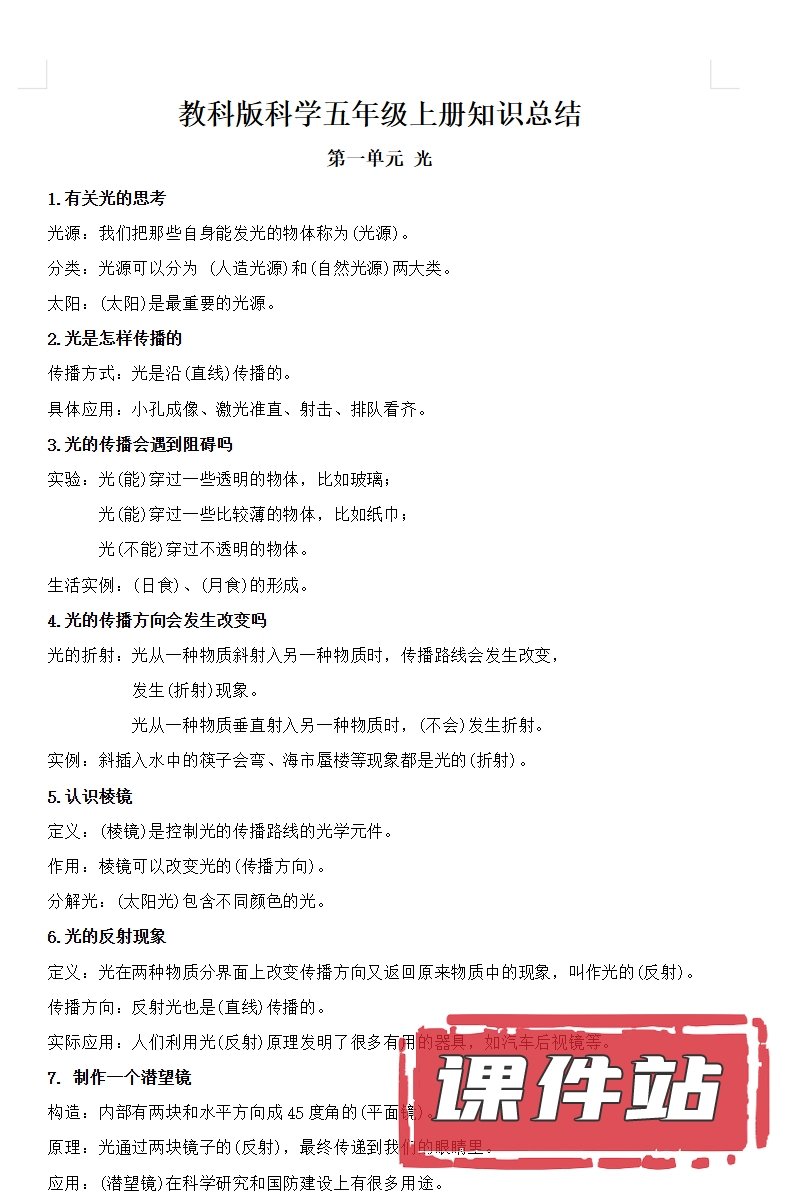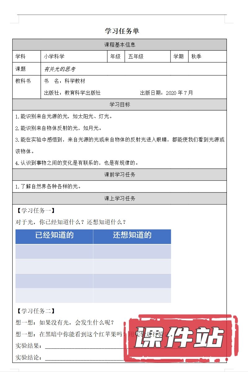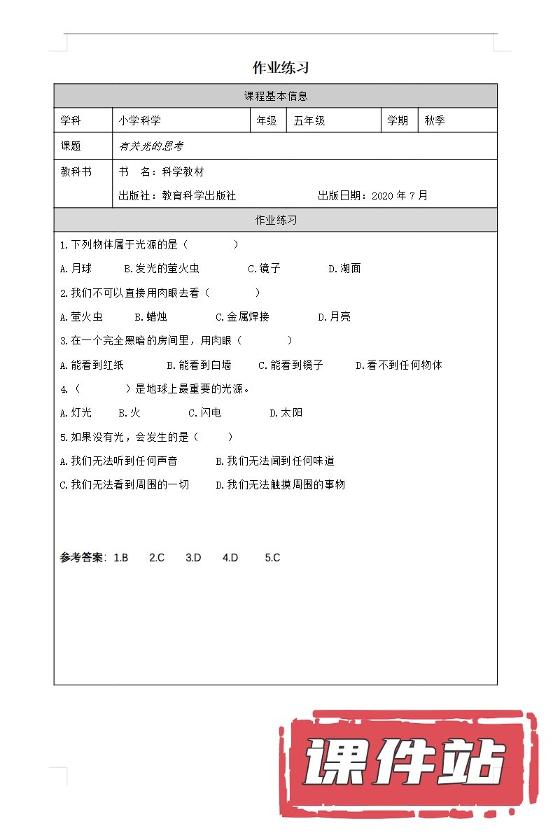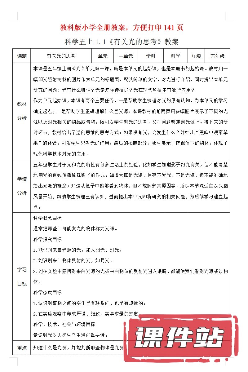 【打包下载】教科版五年级科学上册教学资源