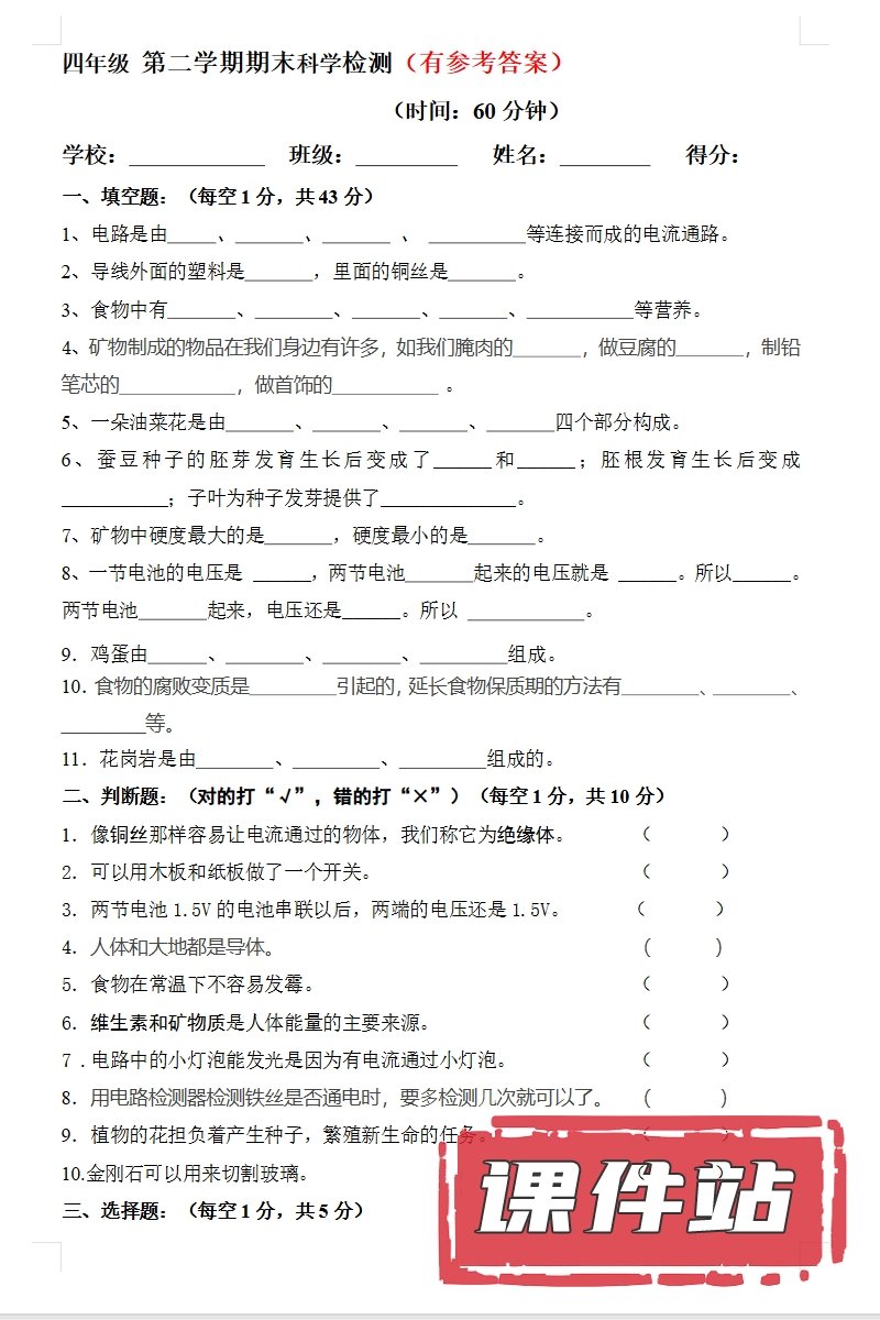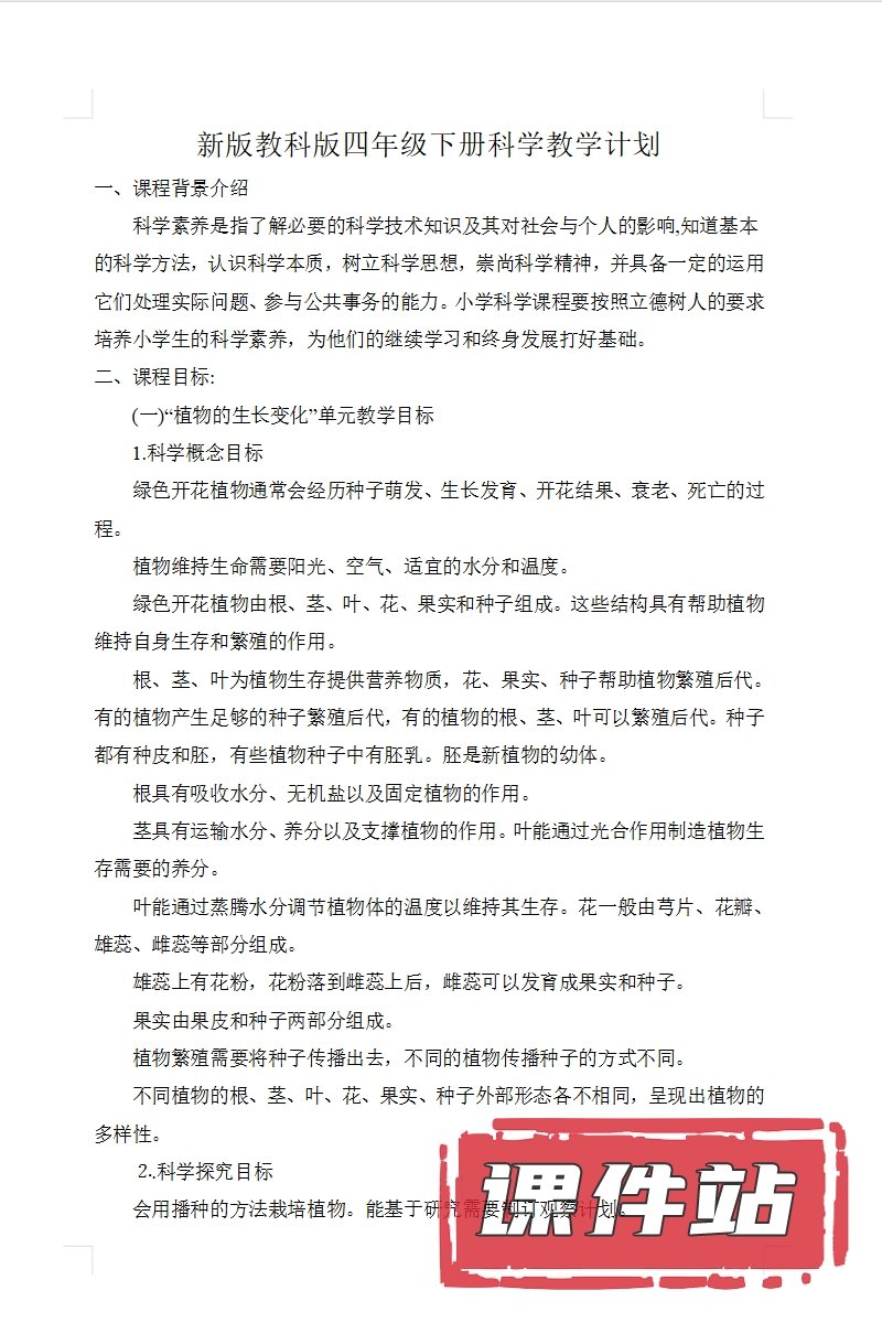 【打包下载】教科版四年级科学下册教学资源