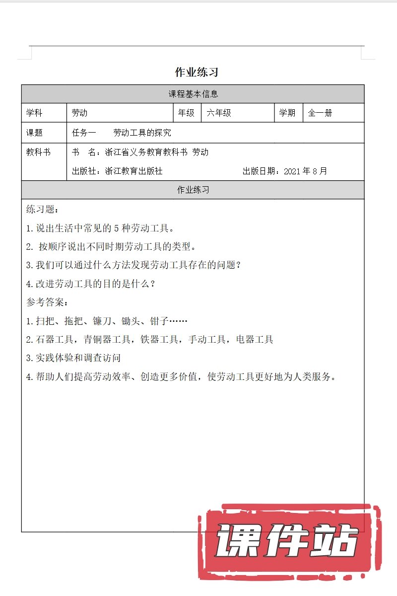 【打包下载】浙教版劳动6年级全册教学资源
