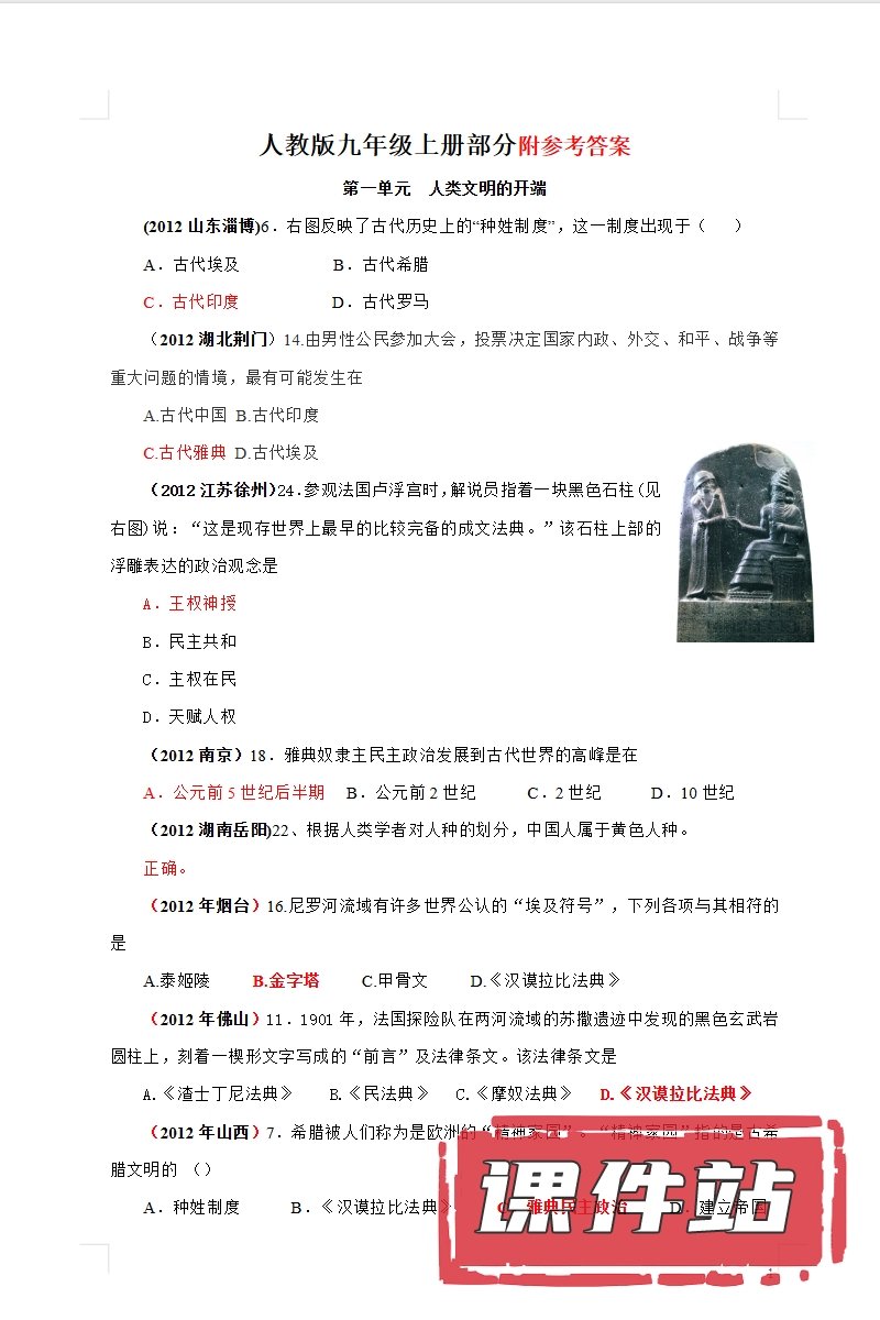 【打包下载】部编版历史九年级上册教学资源