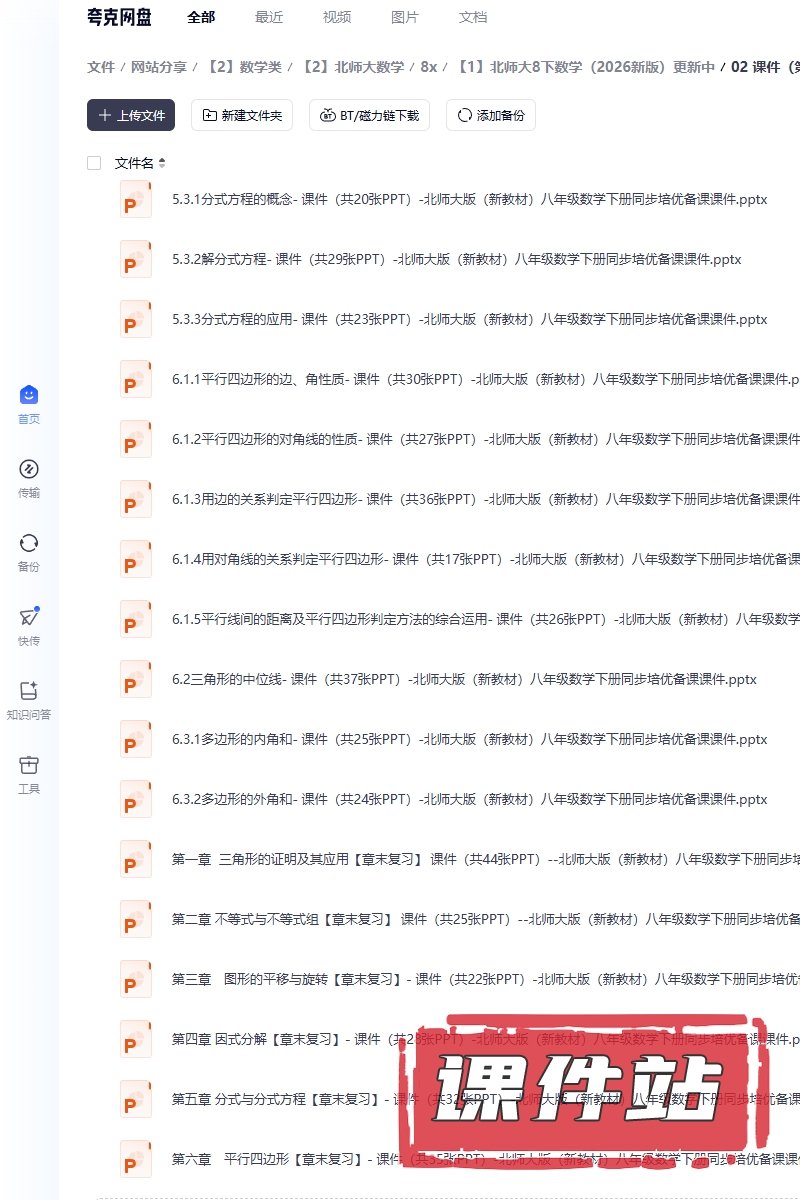【打包下载】:北师大版数学八年级下册教学资源