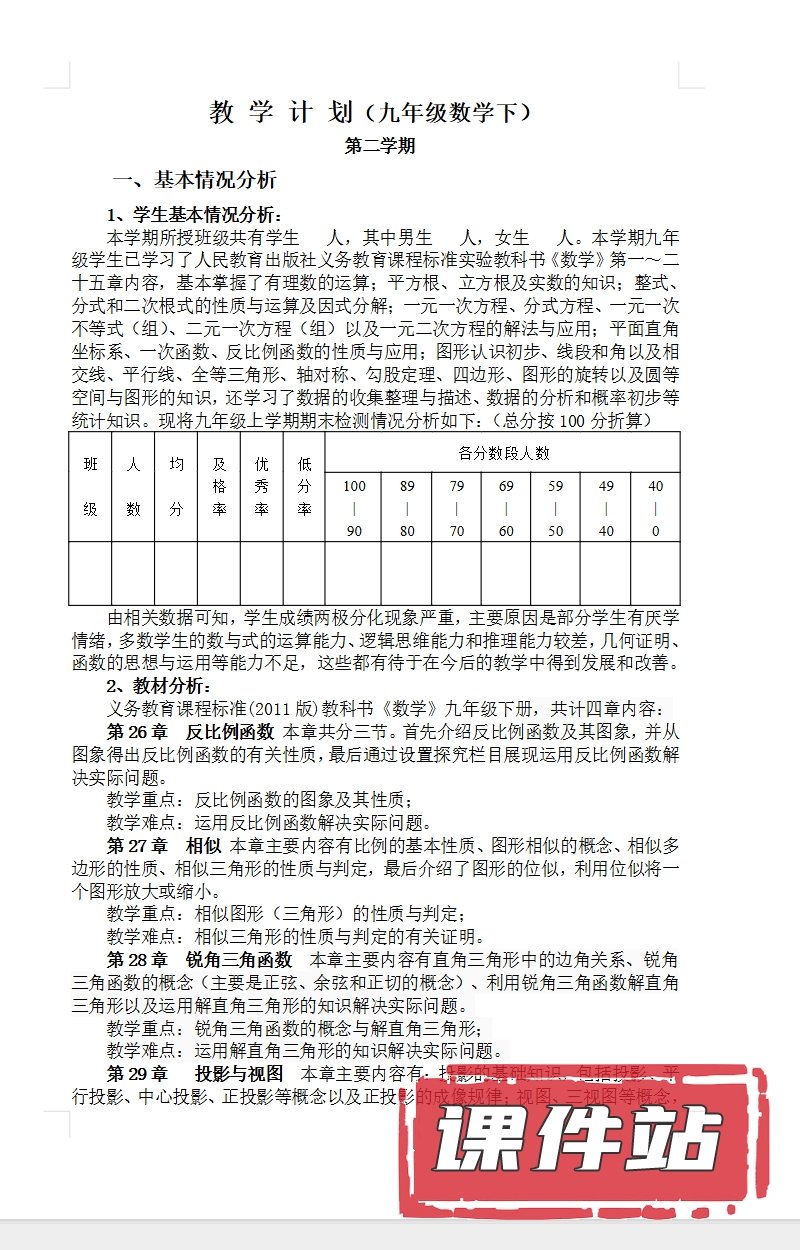 支持← →键盘翻页 主页 > 数学 > 人教版 【编号1341】人教版初中数学九年级下册教学资源