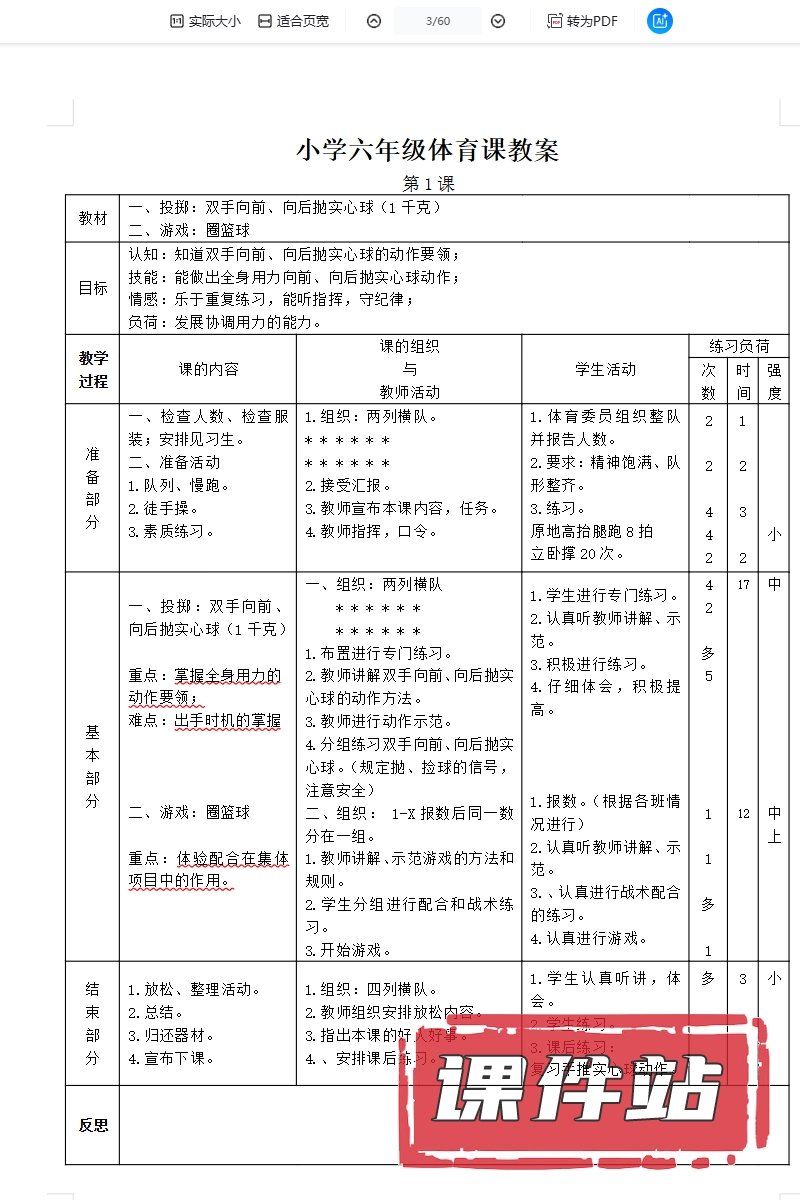 【打包下载】小学体育教案教学资源