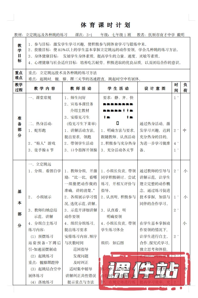 【打包下载】跳远教案教学资源