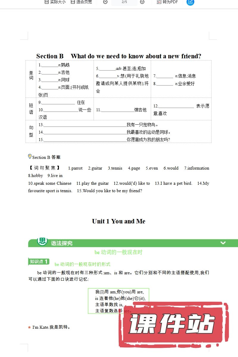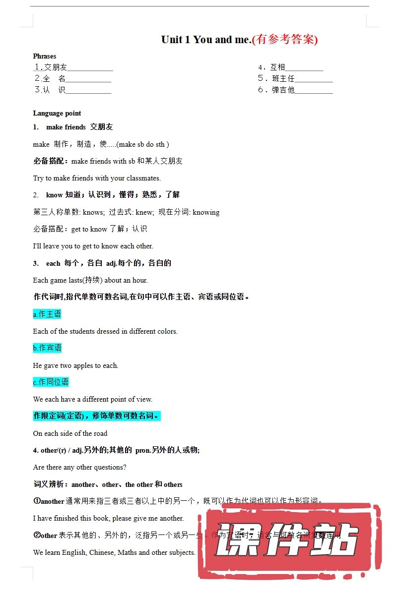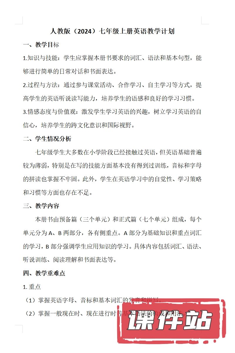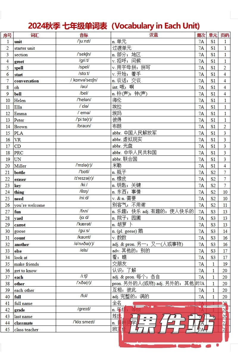【编号1355】人教版初中英语七年级上册教学资源