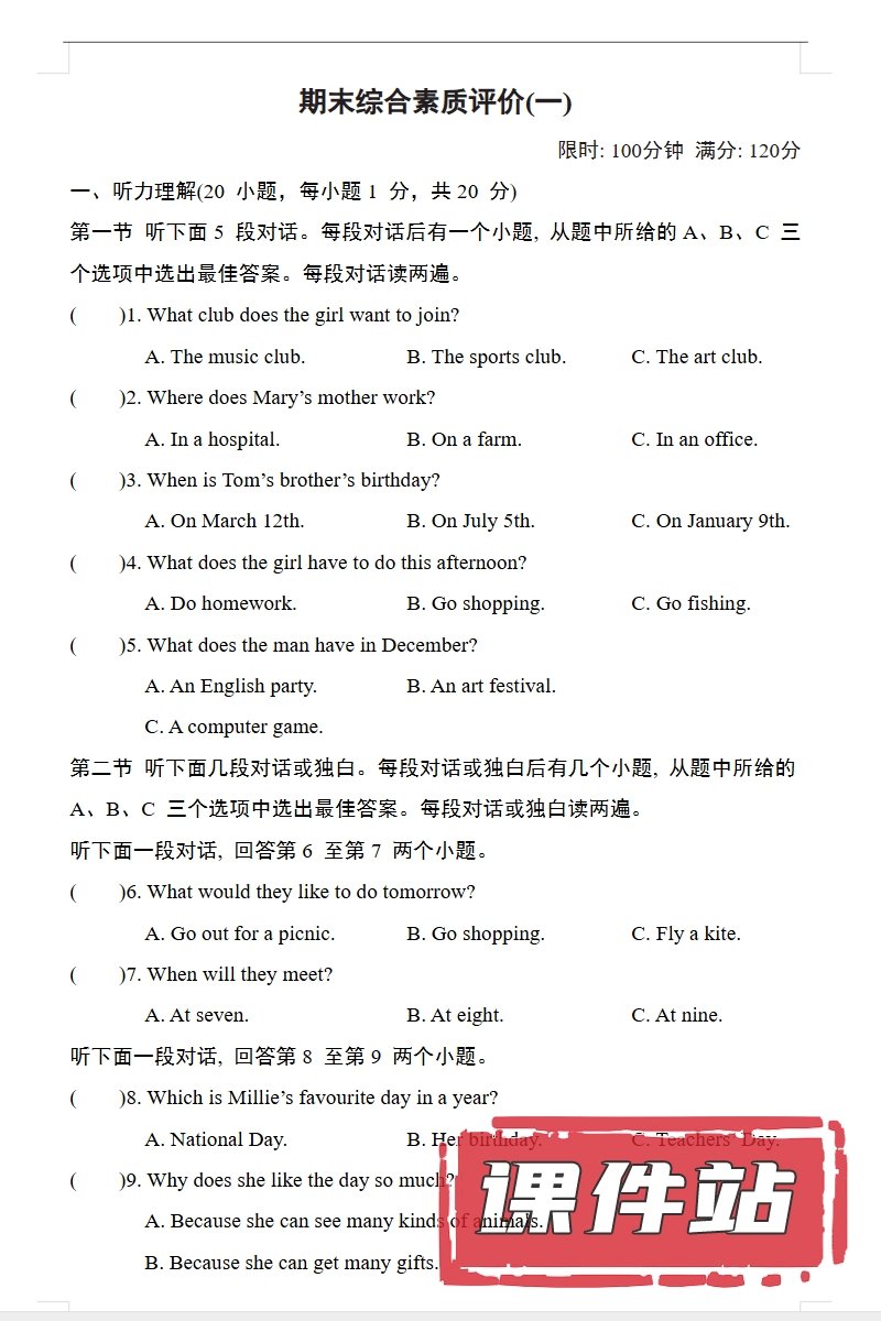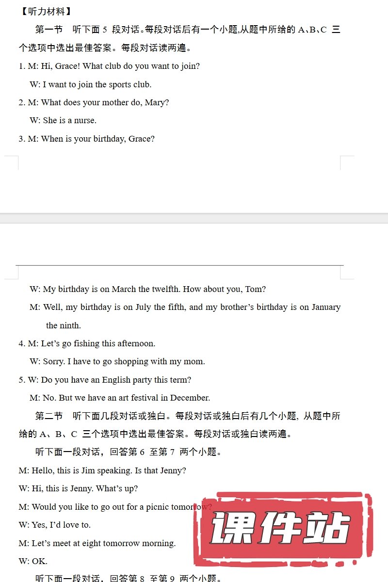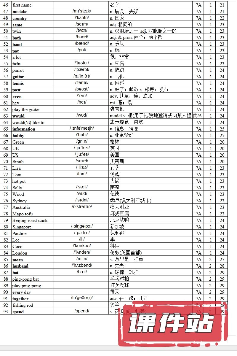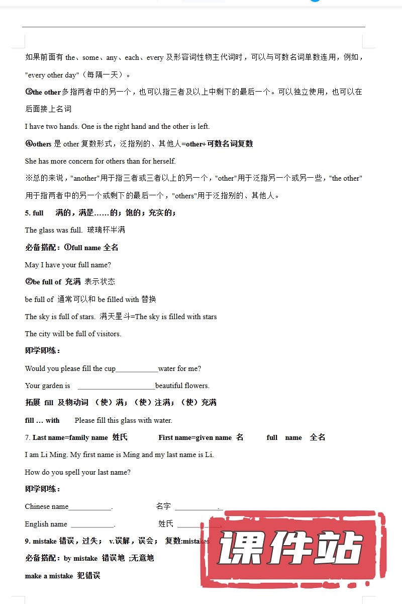 【编号1355】人教版初中英语七年级上册教学资源