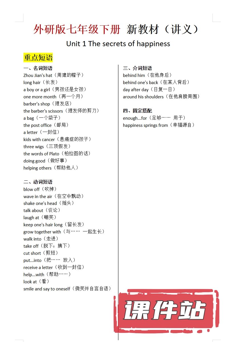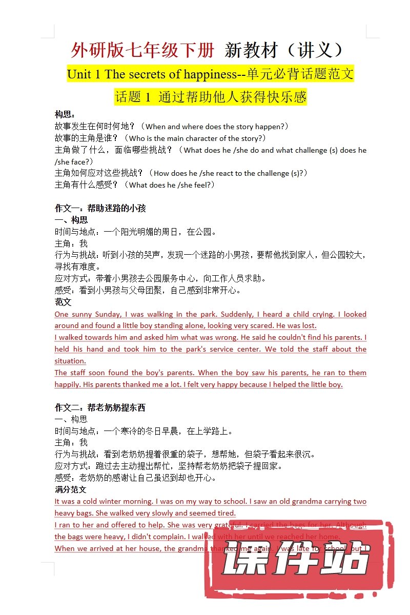 【打包下载】外研版英语七年级下册教学资源