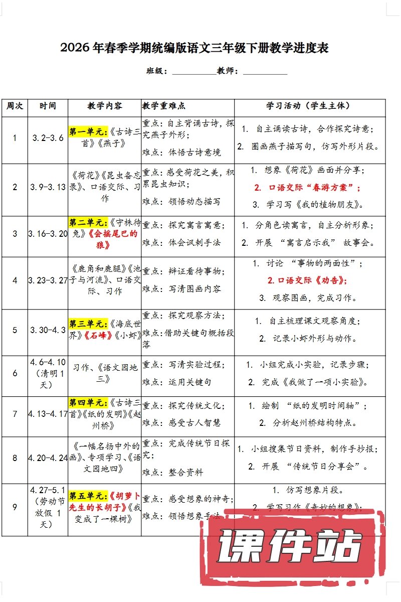 【打包下载】部编版三年级语文下册教学资源