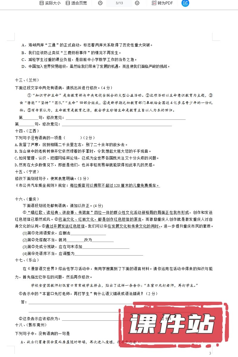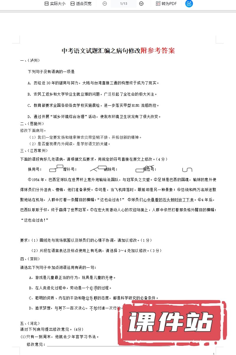 【打包下载】中考语文教学资源